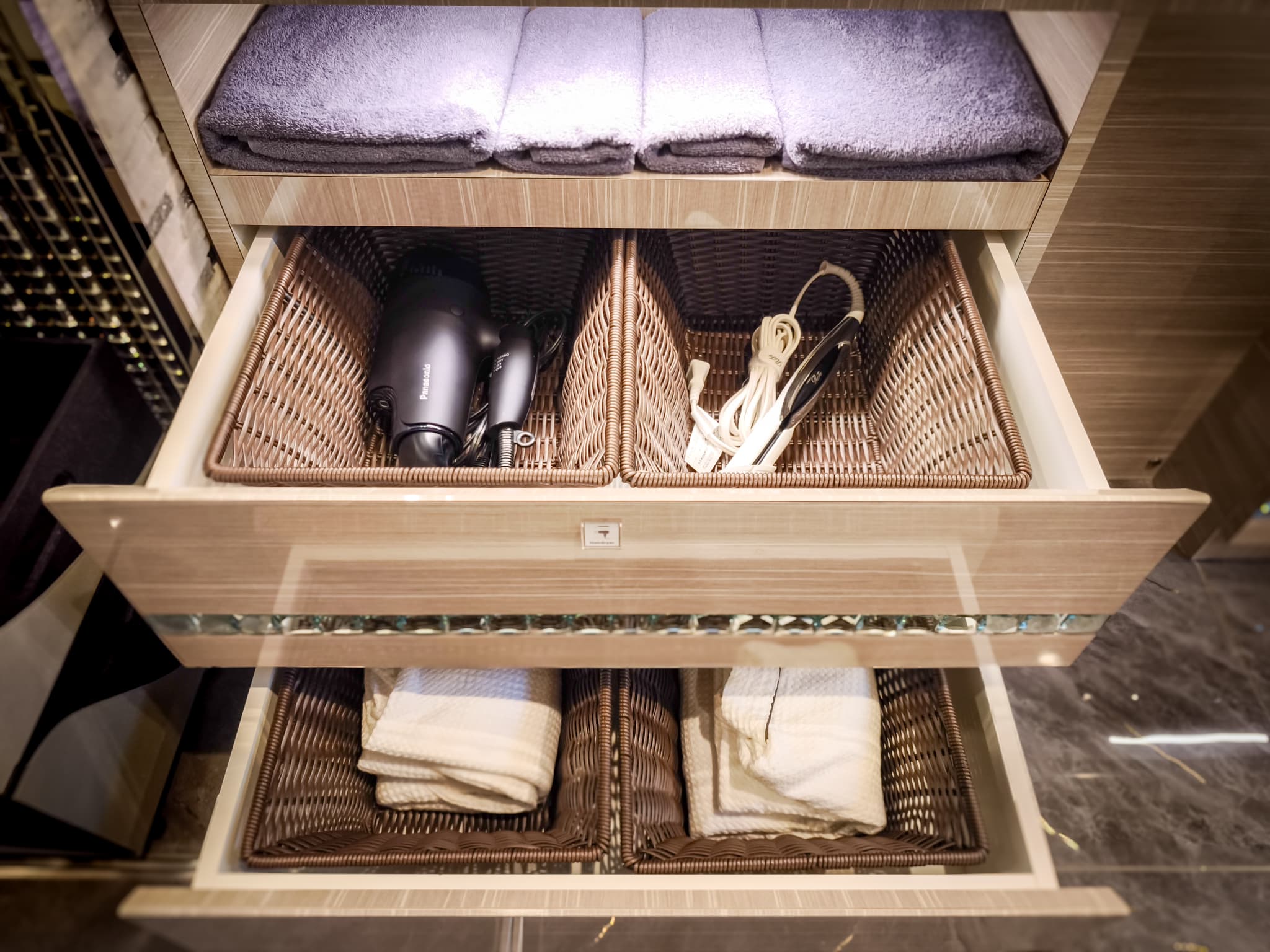 ホテルクイーンANNEX最大級の広さを誇るインペリアルスイートルームは、大画面テレビ2台やBluetoothスピーカー、通信カラオケ、製氷機、洗濯乾燥機など設備が充実。